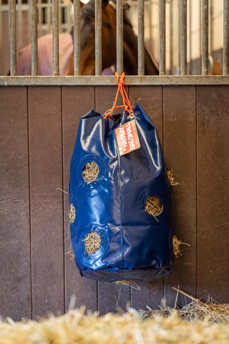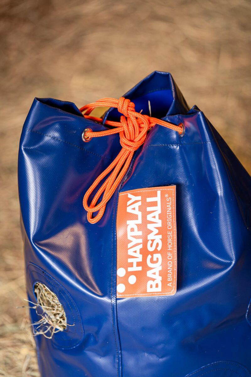 HayPlay Bag SMALL är designad för situationer där utrymme och flexibilitet är viktigt – som i transporten, på klinik eller på tävling. Den kompakta storleken och säkra upphängningen gör den till den ideala slowfeedern när du är på väg. Din häst kan äta utan stress – även under resan.